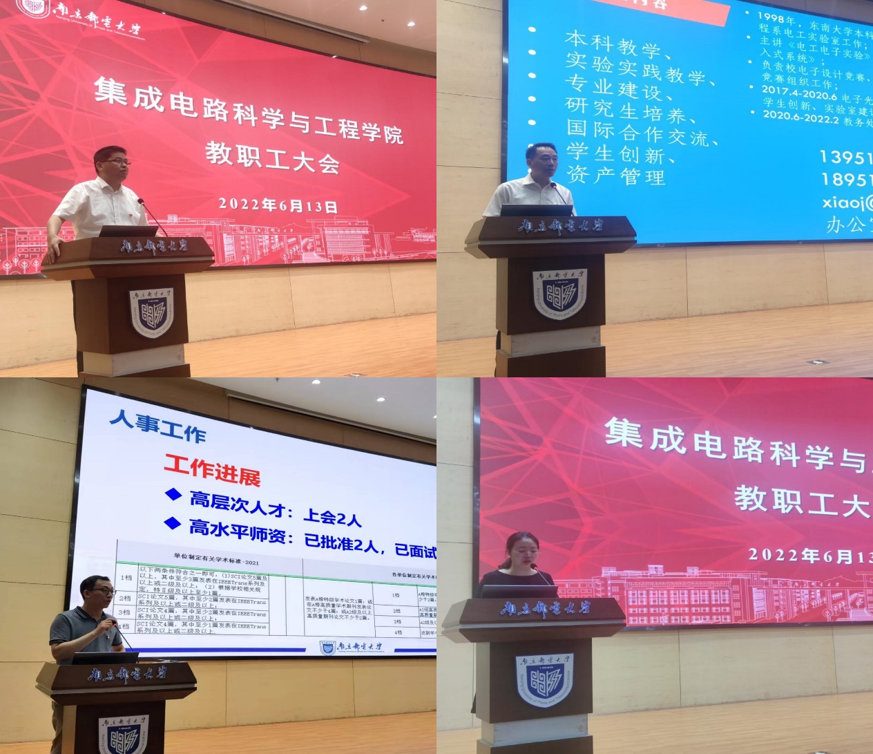 副院长肖建从本科教学、实验实践教学、专业建设、研究生培养、国际合作交流、学生创新、资产管理等方面向大会作工作汇报,希望大家立足教学,融合创新,践行立德树人、教书育人使命。