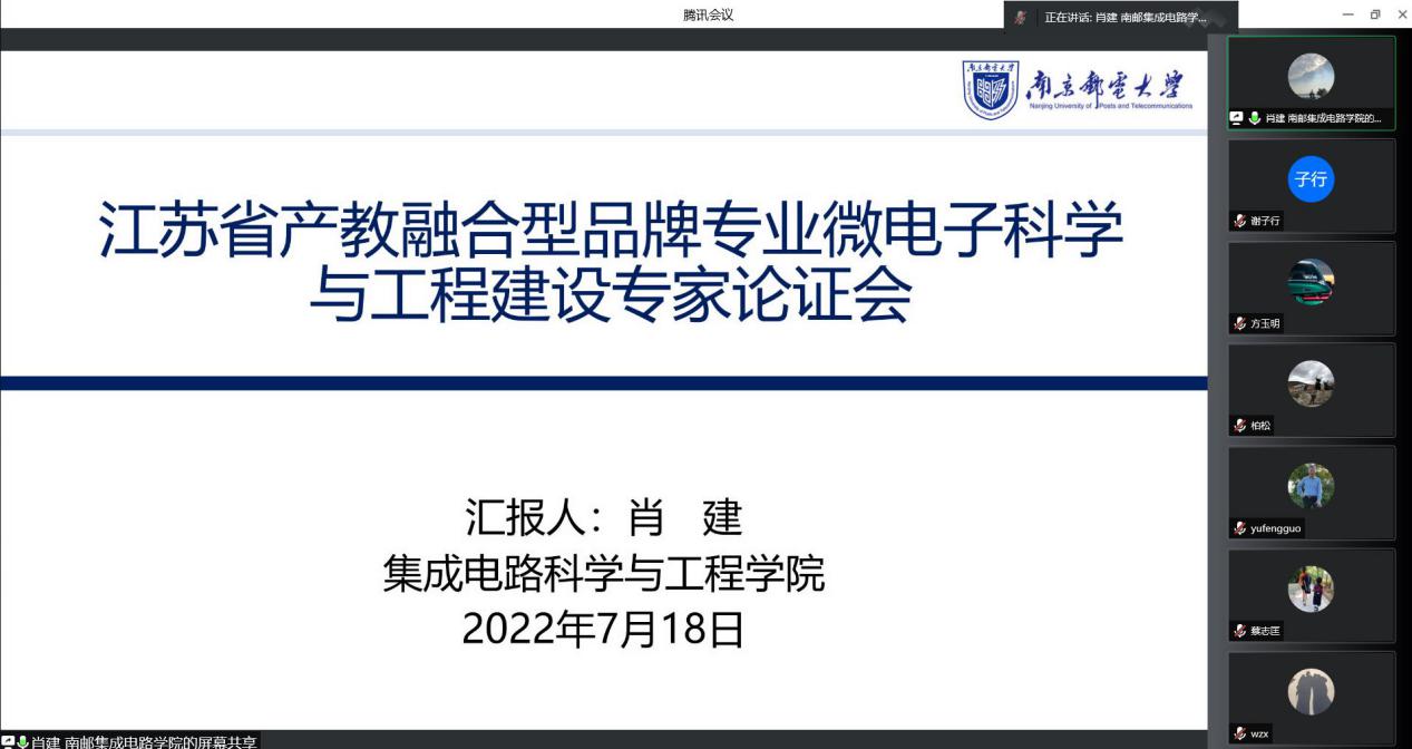 为进一步深化校企合作,探索校企协同、产教融合的人才培养模式,麻豆做爱 组织召开微电子科学与工程江苏省产教融合型品牌专业建设任务专家论证会。出席会议的专家有,东南大学吴俊教授、中国电子科技集团首席专家研究员柏松、芯昇科技有限公司研发总监柳耀勇、华天科技(南京)有限公司技术总监诸玉平、南京信息职业技术学院李洪昌教授,我校党委常委、副校长、麻豆做爱 院长(兼)郭宇锋教授、麻豆做爱 副院长蔡志匡、肖建、院长助理、各系主任参加了论证会。