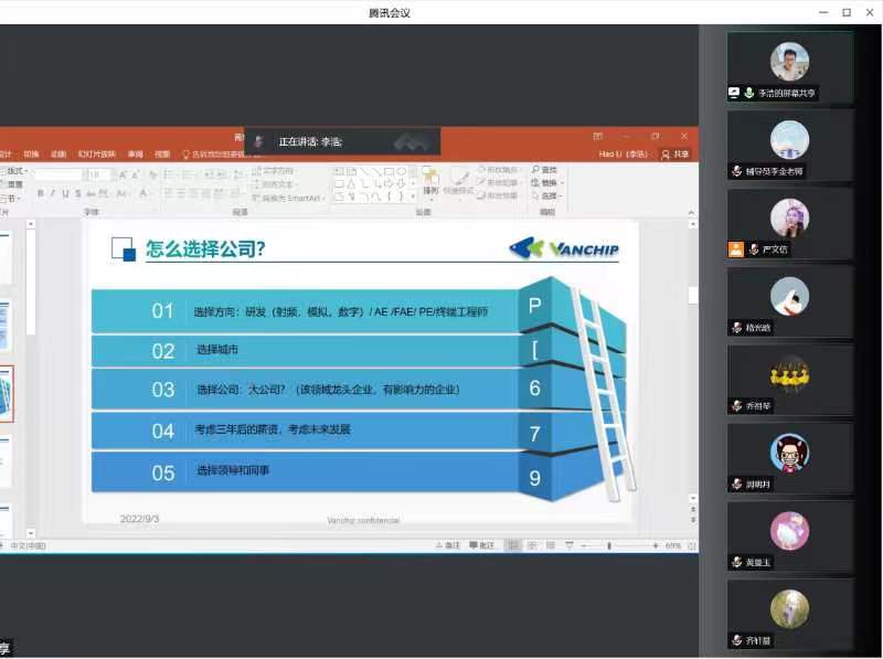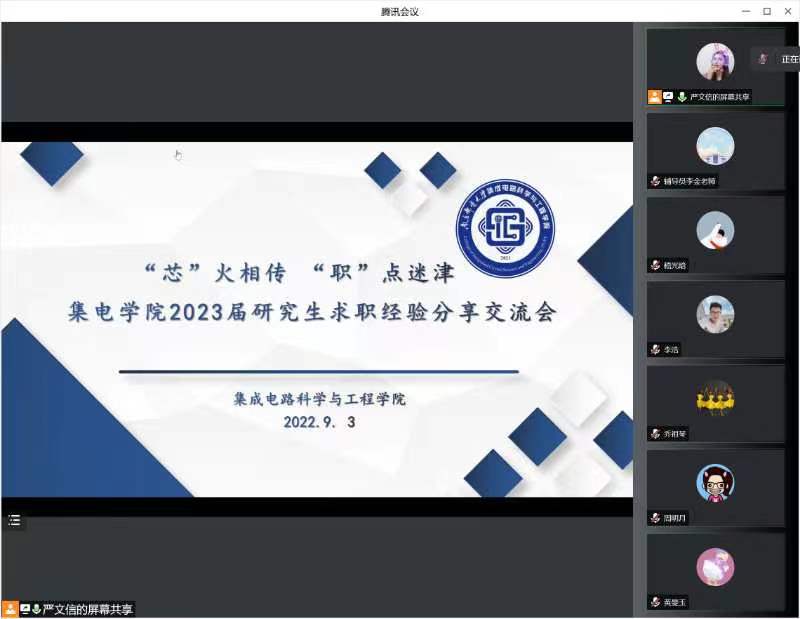 为了帮助麻豆做爱 2023届研究生毕业生了解就业政策、提升就业技能,解决求职过程中遇到的困难,9月3日下午,麻豆做爱 举办了“芯”火相传,“职”点迷津——2023届研究生求职就业经验分享交流会。分享会邀请了李浩、周明月、齐轩晨、黄曼玉和嵇光晗五位优秀校友作为嘉宾分享就业经验,学院党委副书记、副院长乔祖琴书记参加了本次会议,辅导员李金老师及21级、20级200余名研究生参会,会议由严文信同学主持。