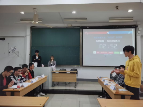 首先,第一场辩论赛于教4-308举行。主席介绍了到场的评委与参赛的辩论队后,第一场辩论正式拉开帷幕。正方辩手就“全民关注微博热搜是可喜的”这一观点慷慨陈词;反方则认为“全民关注微博热搜是可悲的”,辩手陈述相关的数据与事例,陈词字字珠玑,掷地有声。最终,反方获得了胜利,正方二辩摘得“最佳辩手”称号。