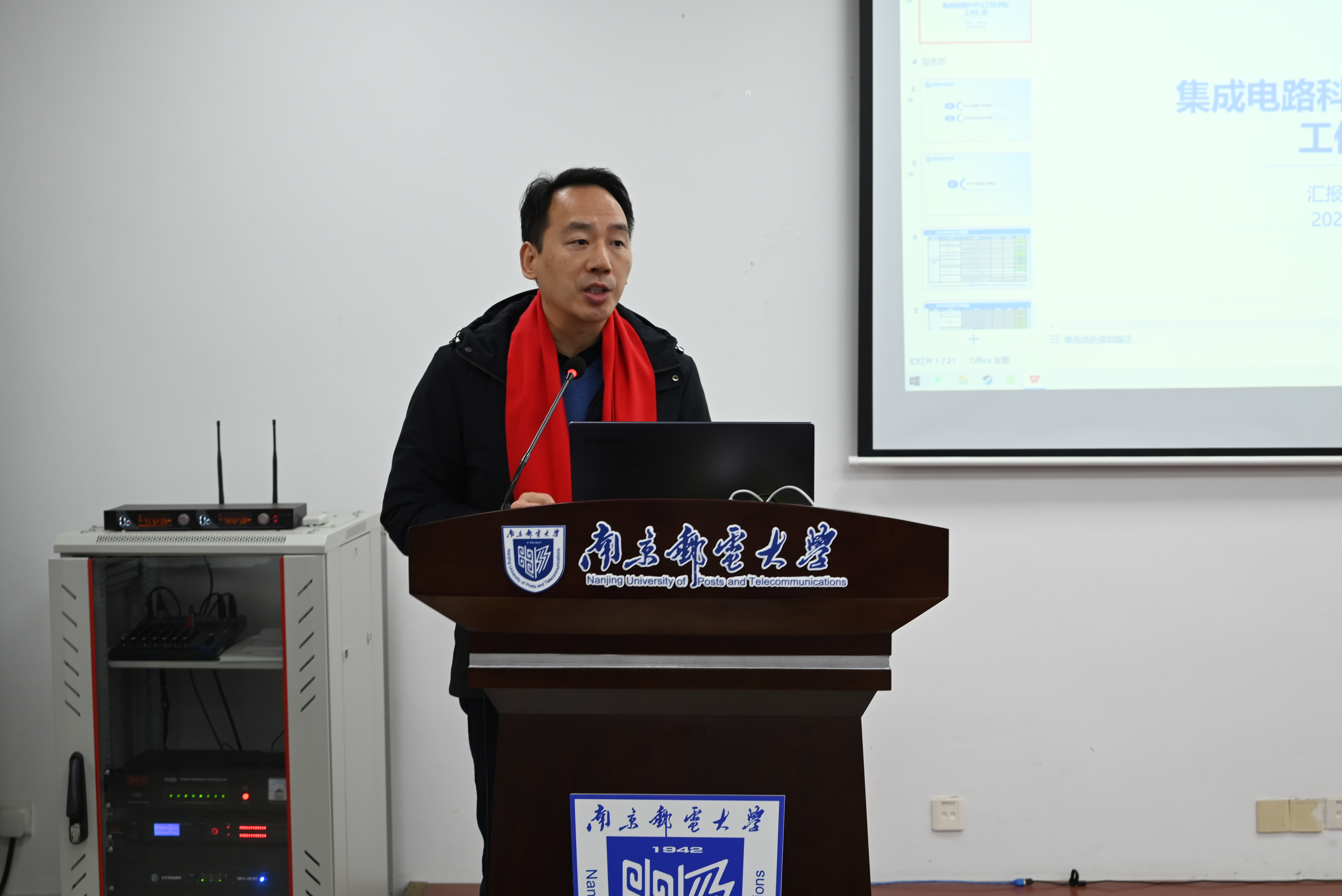 郭宇锋校长发表热情洋溢的讲话,对学院全体教职工一年来的辛勤付出表示感谢。他指出,学院在2023年面临着重大发展机遇,重点阐述了学院未来浦口办学的具体原因和意义。他强调,要抓住机遇,努力开创学院发展新局面,培养出更多符合集成电路产业发展的高素质人才;以更好的办学条件和平台,吸引更多高层次人才加盟。同时,他希望所有教职工能够团结一致,以踔厉奋发、笃行不怠的工作热情,交出让学校满意、让学生满意的答卷。