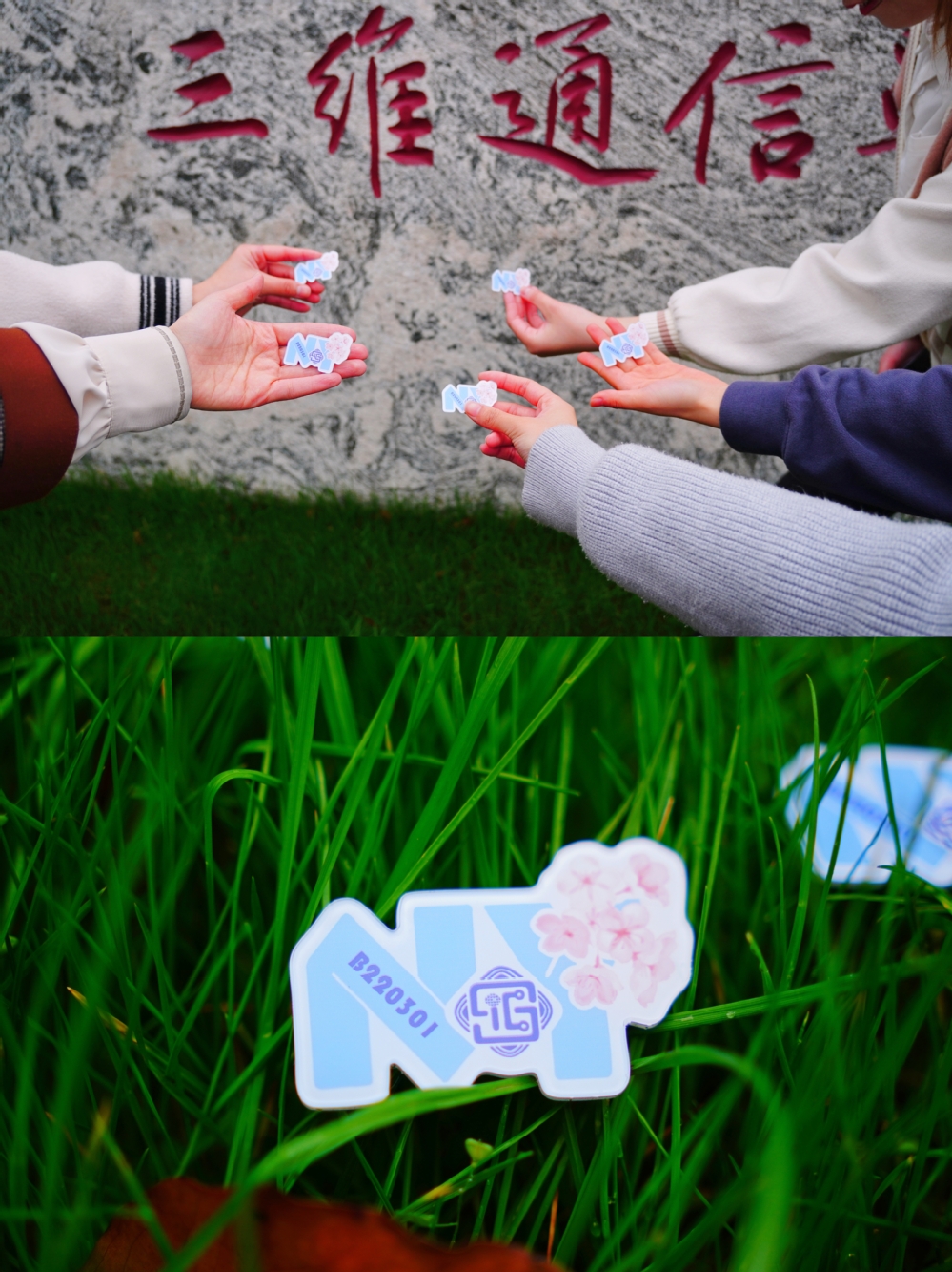 B220301团支部全体成员群策群力,共同打造设计本次团日活动的专属徽章。徽章为亚克力材质,主体部分为“NY”——南邮的首字母,颜色为浅蓝色,与我校信息强国的特色相呼应。“NY”中间为学院院徽,右上角为正在盛放的淡粉色海棠花,左边有B220301的班级标识。