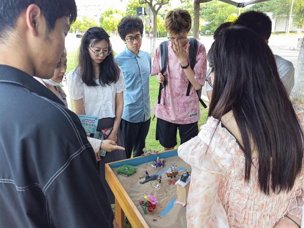 绵软细腻的白沙,加上各式各样的沙具就构成了心理沙盘,各式各样的小摆件甚至吸引了外国友人。在专业老师的带领下,同学们围着小桌共同展开探索和讨论。谁不想认识一下,内心深处的自己呢。只有认识自己,才能更好地爱自己,学会爱自己,才能更好地爱身边的人。