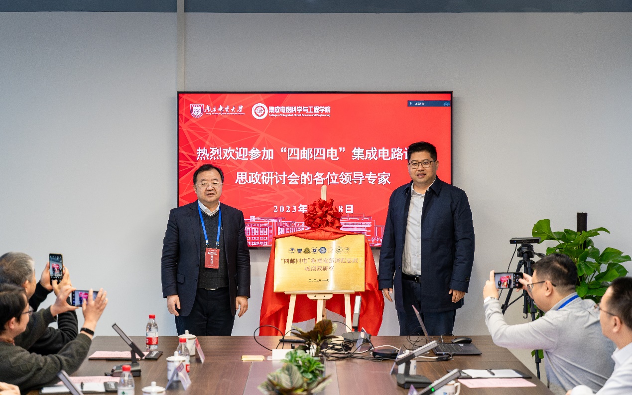 北京邮电大学集成电路学院院长张杰教授与学院党委书记高翔共同为“四邮四电”集成电路课程思政虚拟教研室揭牌。