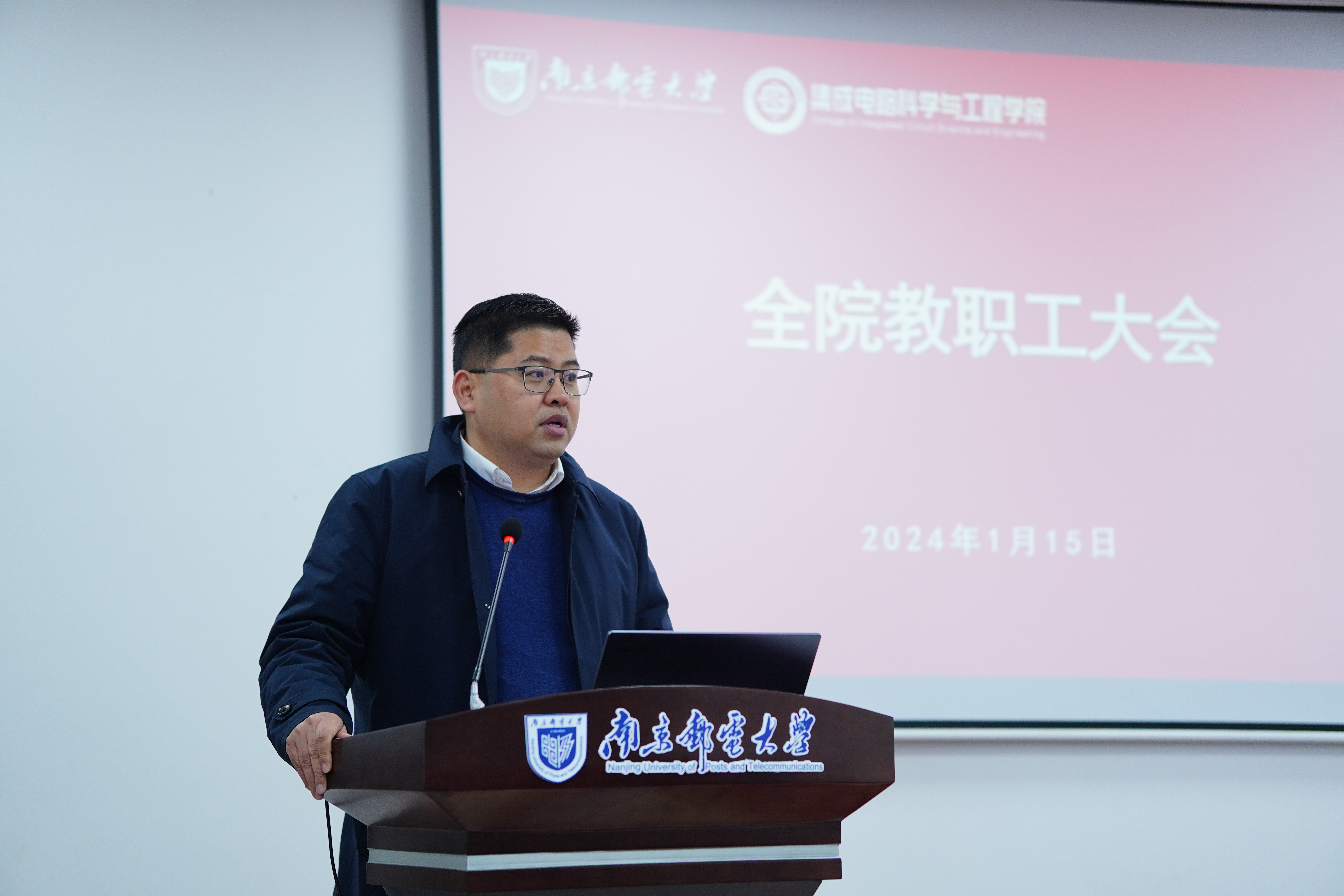 1月15日,麻豆做爱 2024年全院大会暨2023年度全院教师述职大会在仙林校区电光学科楼B322会议室顺利召开。院长蔡志匡,党委副书记、副院长乔祖琴,副院长肖建、靳雷生和全体教职工出席本次大会,党委书记高翔主持会议。