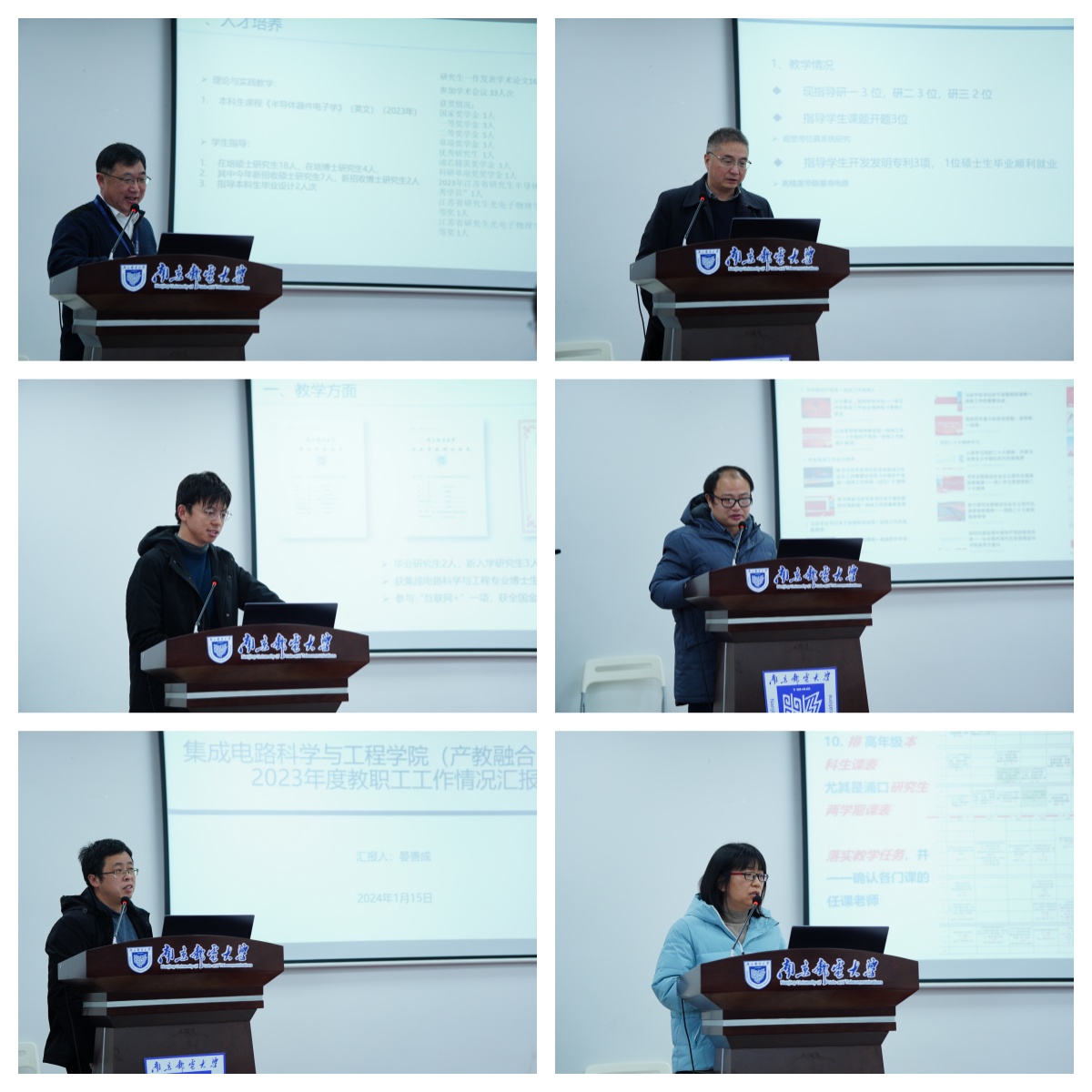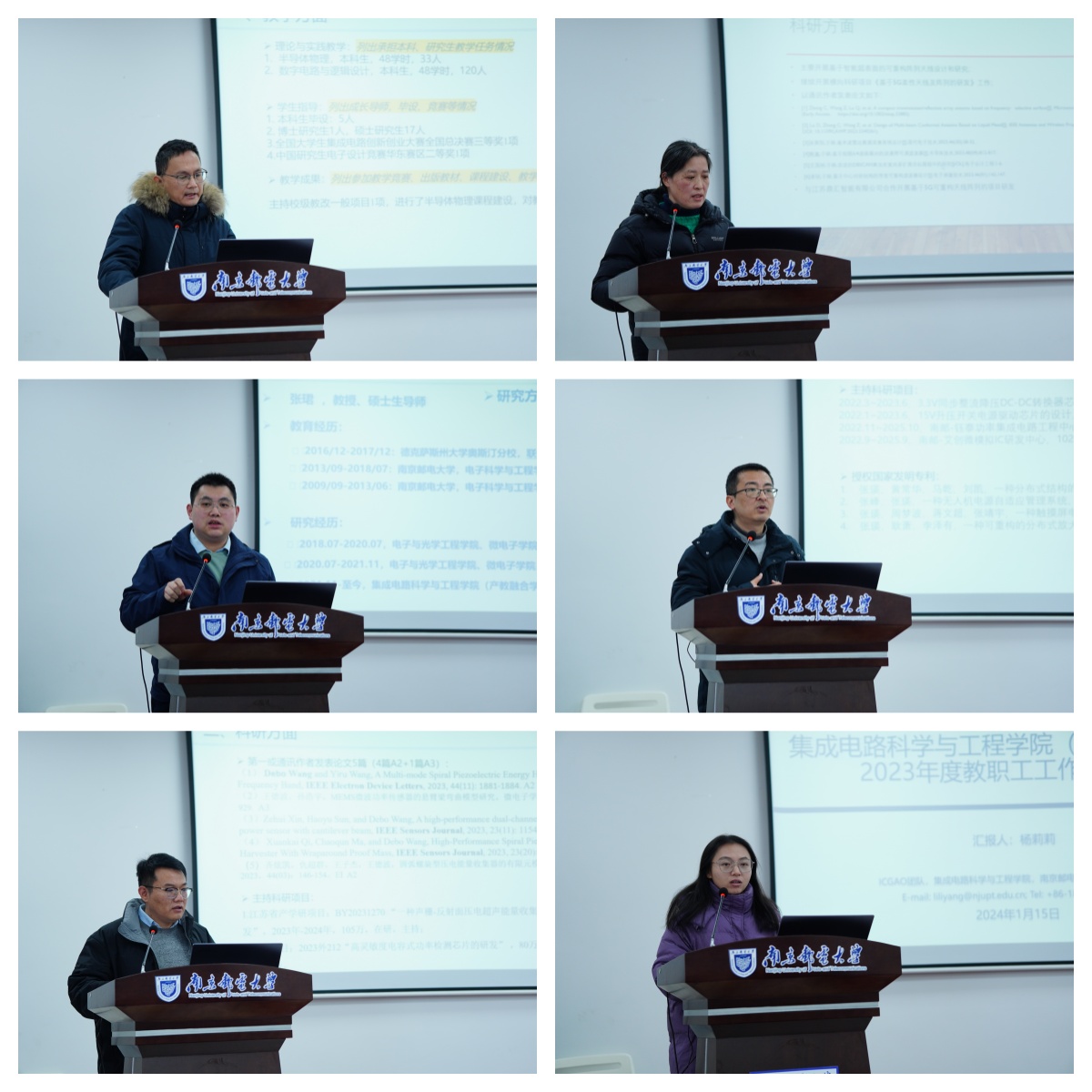 随后,学院全体专任教师围绕2023年度教学工作、科研工作、亮点内容和未来工作计划四个方面一一进行了述职汇报。