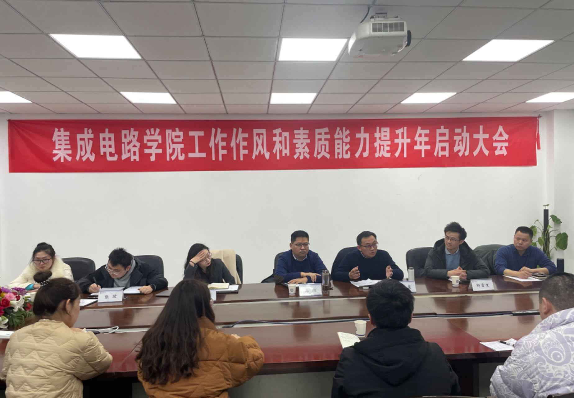 2月23日下午,学院在仙林校区电光B223会议室召开工作作风和素质能力提升年启动大会。院长蔡志匡,党委副书记、副院长肖俊桂,副院长靳雷生,各系主任、党支部书记和全体行政人员参会,学院党委书记高翔主持会议。