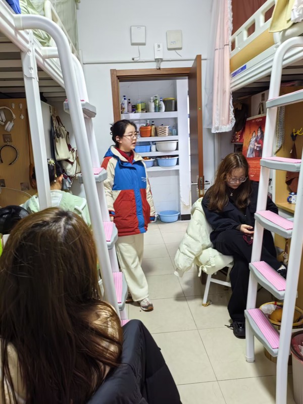 会后,以辅导员刘志敏、宿管阿姨为首的生活委员团队,迅速转化为细致入微的安全守护者,深入学生宿舍进行全面的消防安全大检查。生活委员们秉持“安全无小事,防患于未然”的原则,逐一走访寝室,对每位同学的生活细节给予关心,仔细排查可能存在的安全隐患,包括阳台易燃杂物清理、烟蒂处理以及电器设备无人时是否断电等。每一次轻声提醒,每一个细心的动作,都传递出对学子们人身安全的深深关切。
