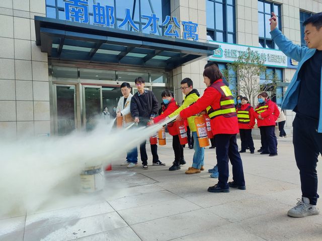 最后,在学校保卫处的指导下,同学们按顺序学习了灭火器工作原理及其具体使用方法,并在现场实际规范操作了灭火器材。