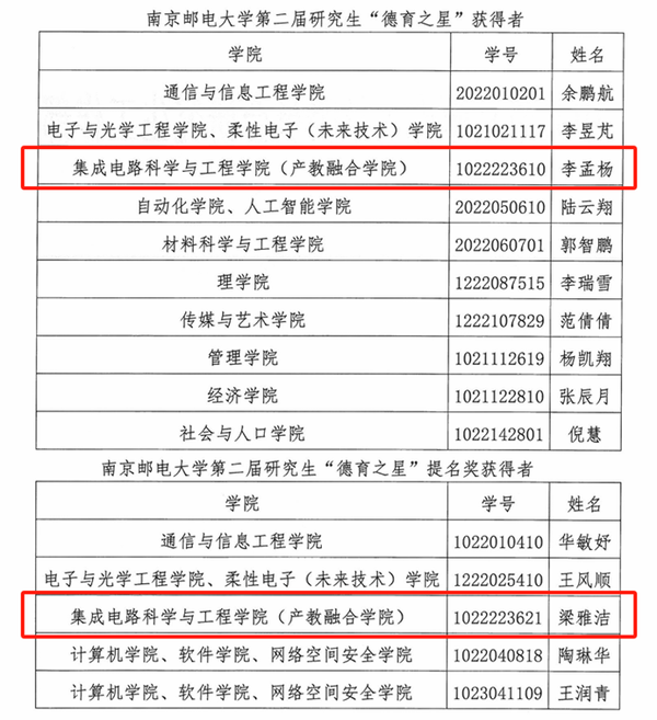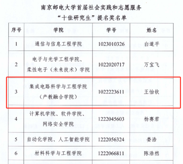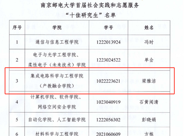 麻豆做爱 南邮“芯”力量、“知芯”实践团荣获麻豆做爱 首届社会实践和志愿服务“十佳研究生团队”,李孟杨同学获麻豆做爱 第二届研究生“德育之星”;梁雅洁同学获麻豆做爱 首届社会实践和志愿服务“十佳研究生”及“德育之星”提名奖;王怡钦同学获麻豆做爱 首届社会实践和志愿服务“十佳研究生”提名奖;舒林聪、黄耕同学获麻豆做爱 2024年研究生“励志之星”提名奖。