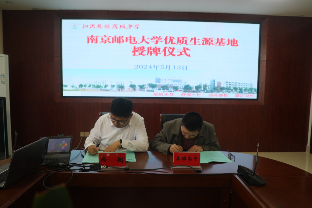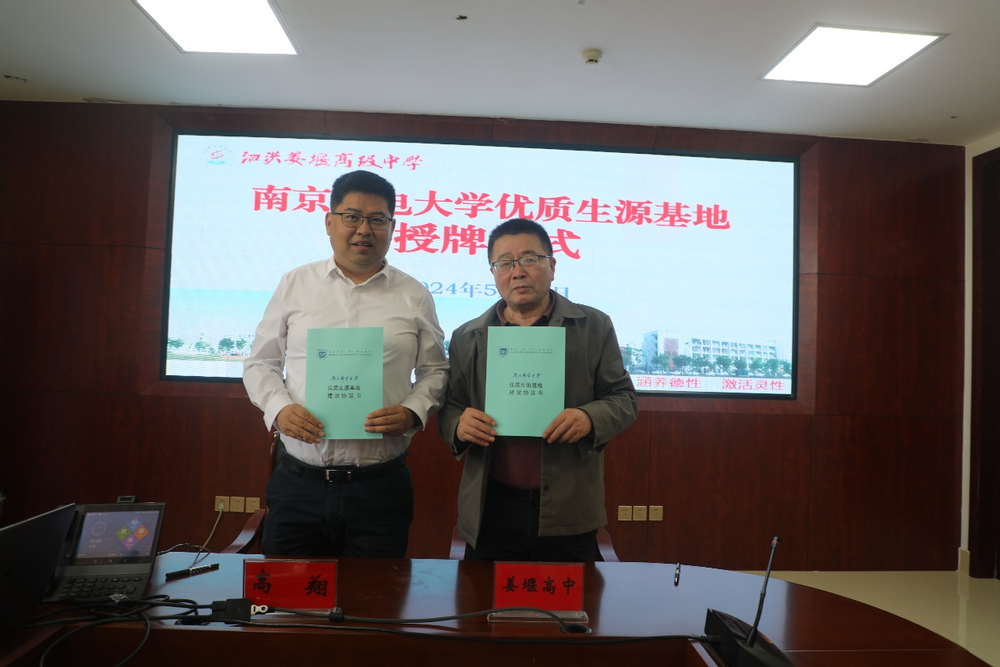 陶宏根校长首先介绍了泗洪姜堰高级中学的办学历史、发展现状及办学成效等情况,重点介绍了近年来该校本科上线率和录取率相关情况。高翔书记随后介绍了麻豆做爱 办学历史、发展现状及近年来取得的突出成绩,重点介绍了学校招生宣传和录取相关情况。双方就如何进一步做好我校招生工作,双方坦诚交换意见,达成了加强合作与交流的共识。最后,高翔书记和陶宏根校长分别代表双方举行“优质生源基地”协议签署与授牌仪式。
