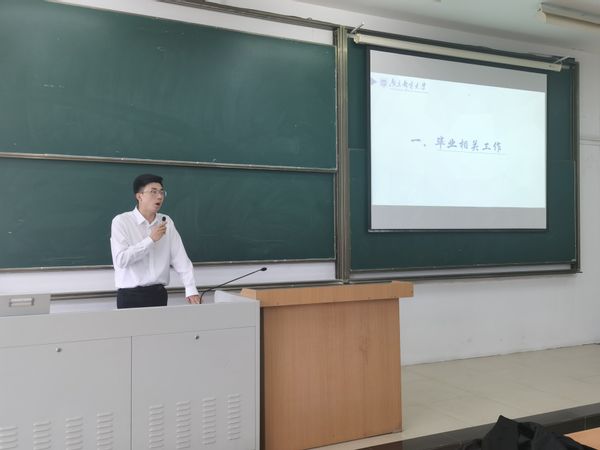 会上,范老师首先向全体同学传达了学校及学院关于毕业生相关事项的工作要求与整体部署安排,并要求同学们认真听讲,及时记录,确保自身对于毕业相关的流程和所需资料有清晰的认识和具体的了解。紧接着,范老师结合毕业生离校前的重要时间节点展开梳理,详细讲解了毕业典礼、离校手续、档案转递等毕业季重要事项内容,提醒全体同学务必注意各类时间节点,梳理个人毕业相关事宜,做好离校准备工作,保证顺利毕业。