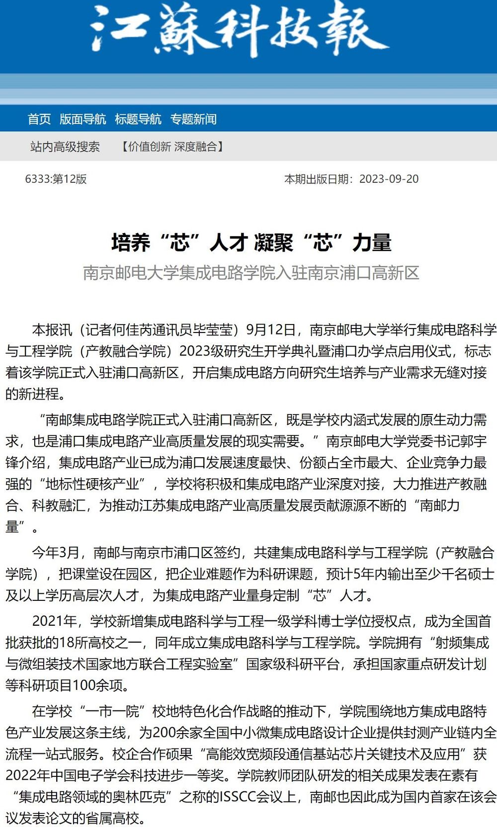 【江苏科技报】培养“芯”人才 凝聚“芯”力量