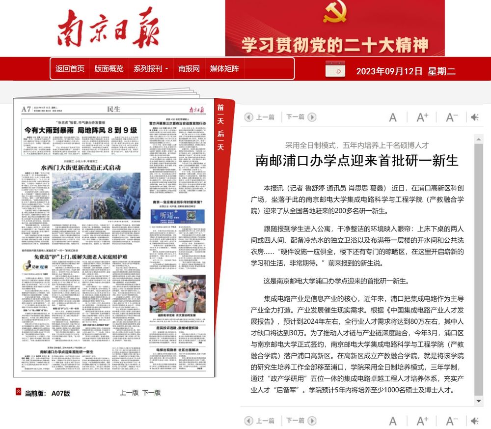 【南京日报】南邮浦口办学点迎来首批研一新生