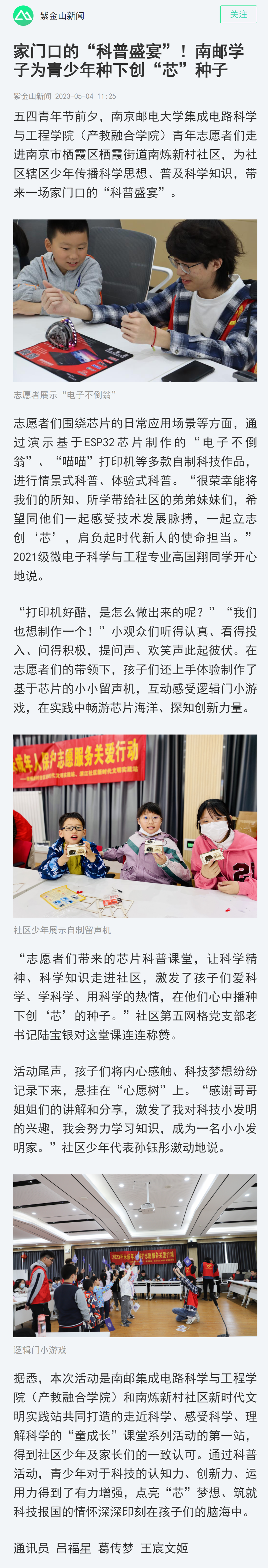 【南京日报客户端】家门口的“科普盛宴”!南邮学子为青少年种下创“芯”种子