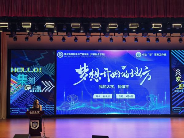 金秋送爽,希望绽放,丹桂飘香,扬帆起航。9月8日上午,集成电路学院在安恒青春剧场举办了2024级本科生入学教育系列活动之新生开学第一课,由学院党委副书记、副院长肖俊桂主讲,会议由2024级辅导员范建鹏主持,学院所有2024级本科新生参加。