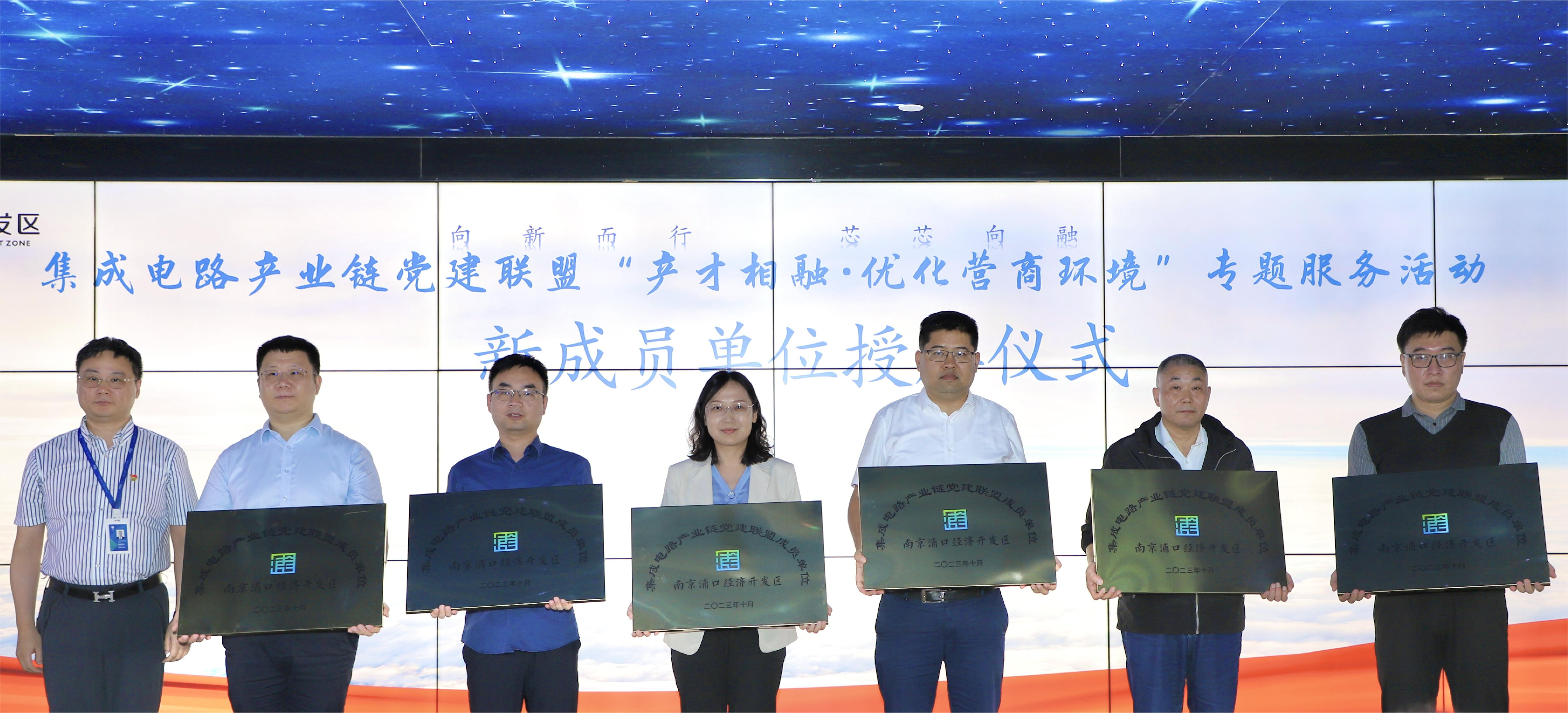 9月26日下午,浦口经济开发区集成电路产业链党建联盟“产才相融·优化营商环境”专题服务活动在浦口经济开发区智慧谷顺利举办。浦口经济开发区党工委副书记滕支兵,开发区集成电路产业链党建联盟主席、江苏芯德半导体科技股份有限公司总经理潘明东等领导出席活动,学院党委书记高翔应邀参加活动,正式加入浦口经济开发区集成电路产业链党建联盟。