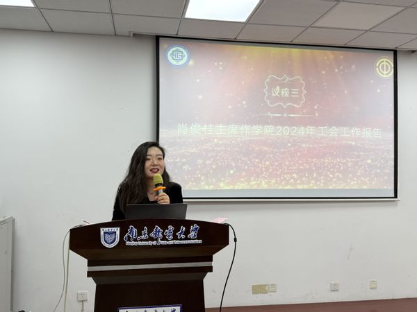 学院党委副书记、副院长、分工会主席肖俊桂作了学院2024年工会工作报告,她从着力凝聚教职工团结奋进力量、着力推动民主管理建设、着力提升教职工幸福感、切实开展建家活动四个方面就工会工作和取得荣誉进行汇报展示。并表示面向未来,学院分工会将继续以“工”聚力量,“会”谱新篇为目标,“有为、敢为、能为、善为”地发挥职能作用,为学院的改革、发展、稳定作出积极的贡献,不断推动学院各项事业取得新的进步,助力学校各项工作取得新的辉煌。此外,大会还对学院提案办理情况进行了审议,确保了学院管理的透明度和公正性。
