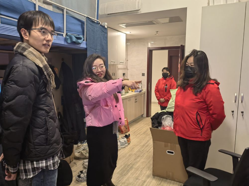 而后,肖书记带领研究生辅导员张龙、学院办公室副主任唐丽和物业管理人员一同走进学生宿舍、研究生工作室进行了安全大检查,着重就学生宿舍、工作室假期值班值守、用电安全、消防安全、假期留校学生生活服务保障等方面工作进行实地走访检查,细致查看各岗位工作开展情况、安全管理情况及相关工作记录,并针对检查中发现的问题和隐患,要求相关人员把“当下改”和“长久立”结合起来,既要紧盯问题、有的放矢、精准施策,推动问题清仓见底,又要举一反三谋划推动整改工作,确保寒假期间校园安全稳定。