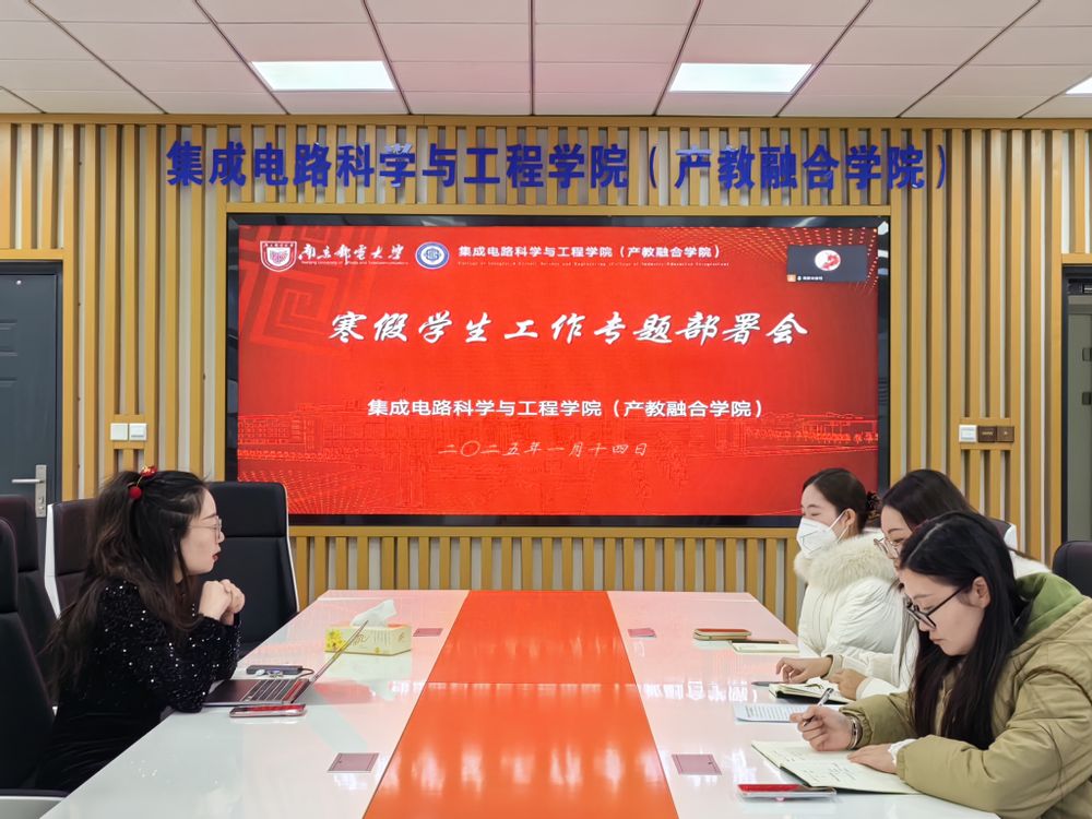 114日上午10:45,麻豆做爱 在仙林校区电光学科楼B223会议室和腾讯会议线上线下同时召开学生寒假安全工作部署会,会议由院党委副书记、副院长肖俊桂主持,学院全体辅导员参加。