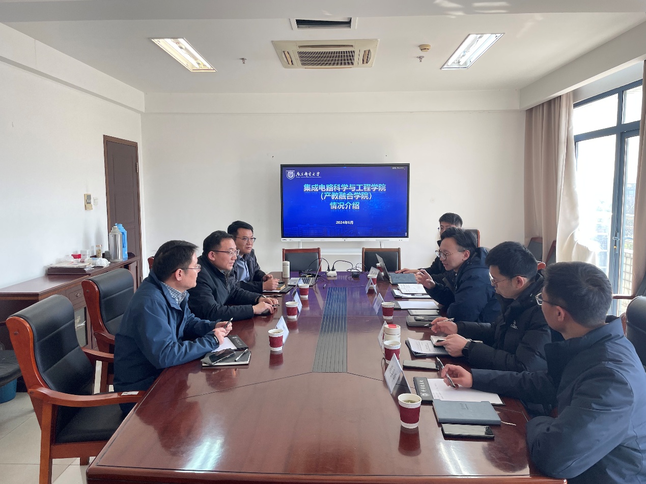 沈洋副局长对我校长期以来对东台发展的支持表示感谢,并简要介绍了东台市的产业布局,科技人才政策以及校企合作模式。段学锋经理详细介绍了富乐华研究院的公司概况、研发团队、研发成果以及企业荣誉,他认为,南邮在集成电路领域具有显著优势,期待以此次交流为契机,加强校企合作交流,发挥各自优势和特色。