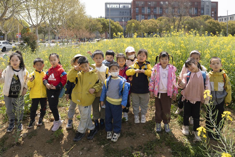 清晨的阳光洒满校园,小朋友们手拉手走进樱花大道,粉白的花瓣随风飘落,引得孩子们欢呼雀跃。“樱花为什么会掉下来呀?”“这棵树有多少岁啦?”志愿者们耐心解答孩子们的童趣提问,还为他们讲述樱花的花期与生长故事。孩子们踮起脚尖轻触花瓣,或用画本记录下眼中的春景,志愿者们则蹲下身来,为他们调整画板、擦拭沾满花粉的小手,画面温馨动人。