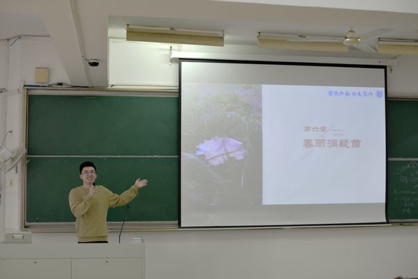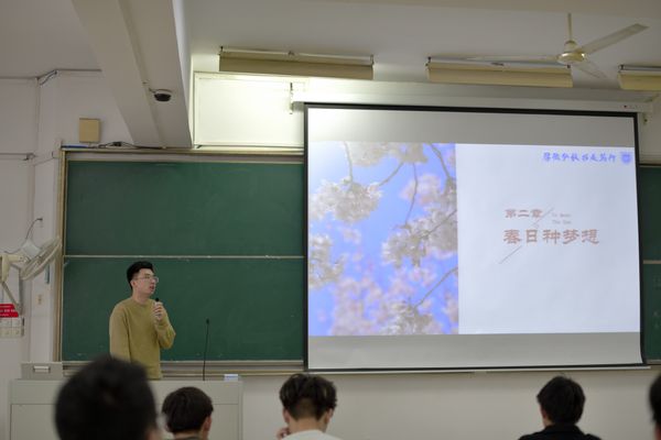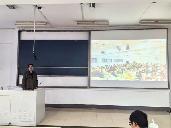 随后范老师以“春日种梦想”为题向同学们介绍和讲解了大一下学期的重要性,简明简要阐述了核心观点:“大一上学期的关键词是适应,而下学期的核心词必须是规划”,督促和建议同学们提早在大一下学期规划大学四年的计划,并解读了部分同学存在的误区和错误观点。他从“技能轴”“专业轴”、“资源轴”三个方面对同学们提出了具体要求,希望同学们努力保持高绩点,积极参与竞赛、科研、校园活动,规划大学生活,度过一个充实、有意义的大学生活。