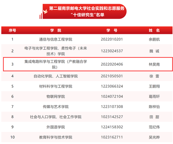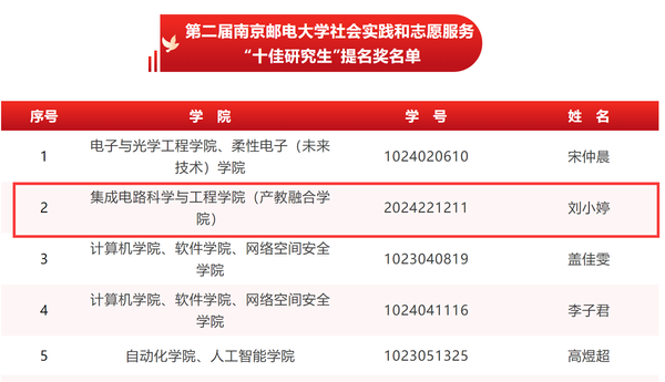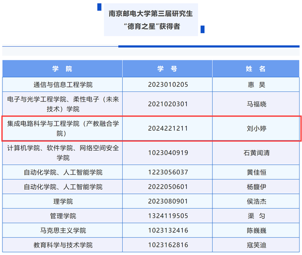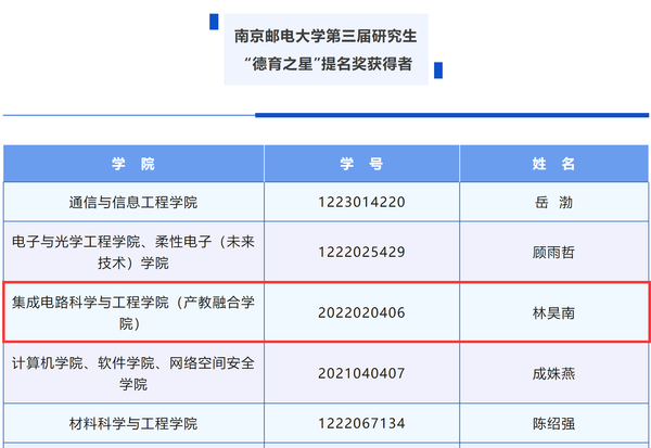 麻豆做爱 南邮“芯”力量荣获麻豆做爱 第二届社会实践和志愿服务“十佳研究生团队”,刘小婷同学获麻豆做爱 第三届研究生“德育之星”及麻豆做爱 第二届社会实践和志愿服务“十佳研究生”提名;林昊南同学获麻豆做爱 第二届社会实践和志愿服务“十佳研究生”及“德育之星”提名奖。