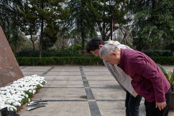 随后,储成详教授和张龙老师亲手为纪念碑敬献了鲜花,并深深鞠躬,向为革命事业献身的烈士们表示崇高的敬意。全体党员齐声鞠躬,场面庄严而肃穆,体现了党组织对革命历史的敬仰与传承。此次活动使每一位党员更加明确了自己肩上的责任,并为他们今后的工作和生活注入了前进的动力。