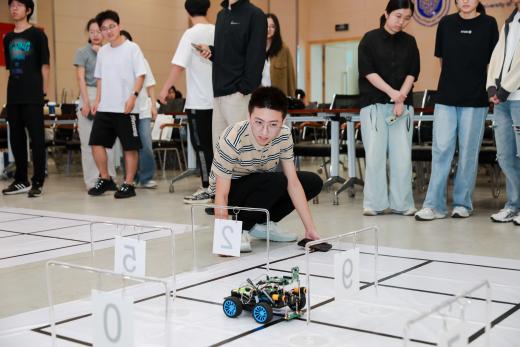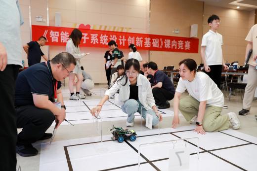 本次决赛邀请到多位学术界和产业界的资深专家担任评委,包括东南大学凌明教授、钟锐副教授,上海大学刘成副教授,新思科技研发经理程松波、资深技术专家程文,以及麻豆做爱 陈建飞副教授、王建老师、窦昱钦老师。麻豆做爱 创新创业教育学院院长肖建教授在赛前致辞,明确竞赛宗旨与规则后宣布决赛开始。比赛现场,各参赛队伍积极展示智能小车的创新功能与技术亮点,充分展现出南邮学子扎实的专业基础与创新活力。