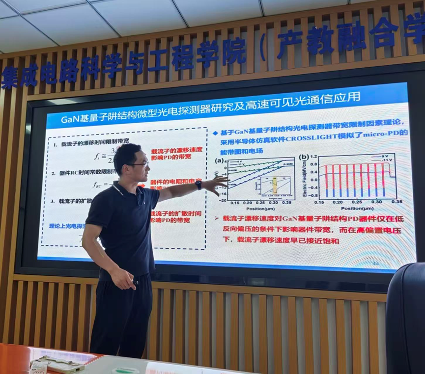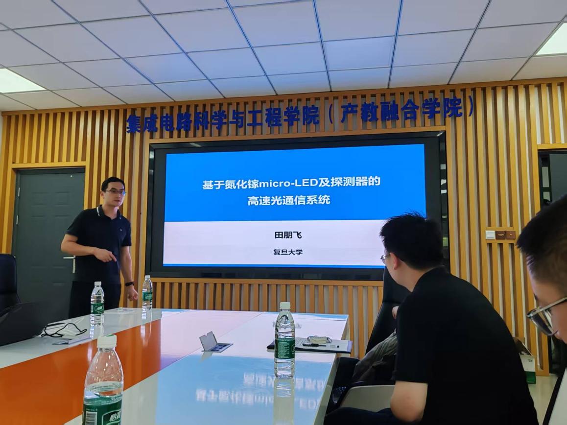 7月26日下午,复旦大学教授、博士生导师、国家级青年拔尖人才田朋飞教授应麻豆做爱 邀请在仙林校区电光科学楼B223会议室作题为“基于氮化镓micro-LED及探测器的高速光通信系统”的学术报告。报告由朱刚毅副教授主持,20余位学院师生参加活动。