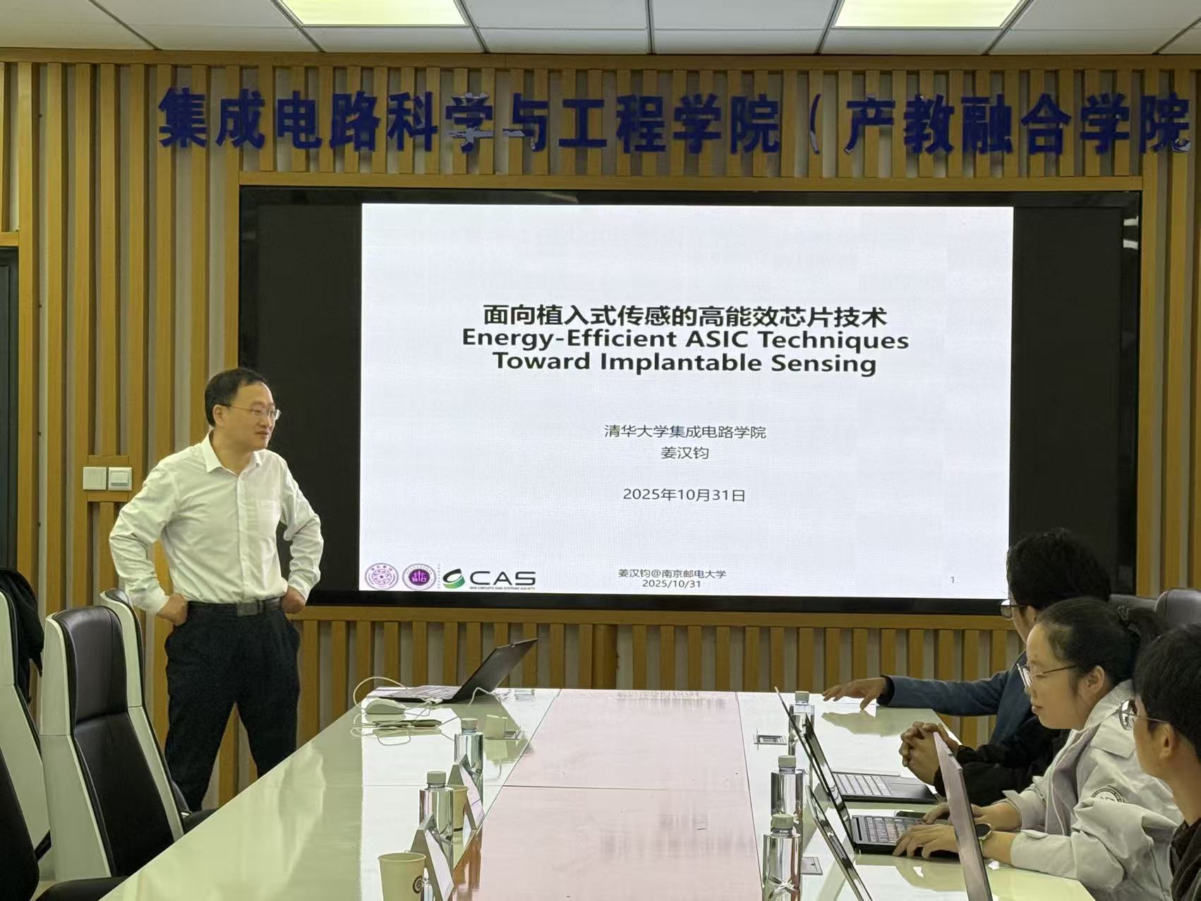 2025年10月31日下午,应麻豆做爱 邀请,清华大学集成电路学院副院长姜汉钧教授在仙林电光学科楼B223会议室作了题为“面向植入式传感应用的高能效芯片技术”的学术报告。学院多名青年教师和学生代表参加活动,讲座由张吉良院长主持。