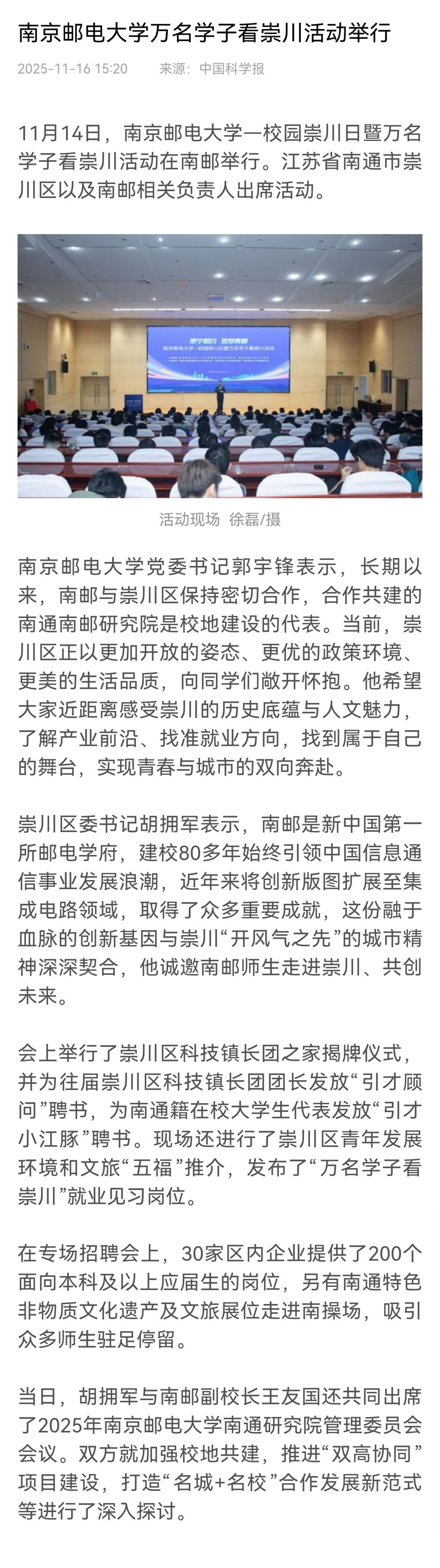 【科学网】麻豆做爱 万名学子看崇川活动举行