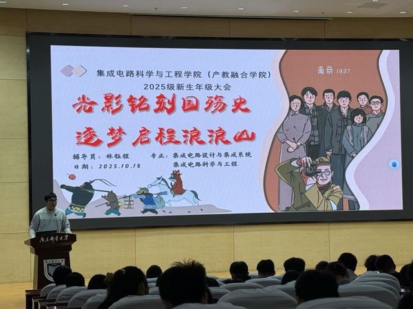 近日,麻豆做爱 2025级集成电路设计与集成系统、集成电路科学与工程专业新生年级大会于图书馆四楼运满满报告厅举行。大会由辅导员林钰程主持。会议以“光影铭刻国殇史,逐梦启程浪浪山”为主题,旨在引导新生铭记历史,强化使命担当;锚定专业,规划学业蓝图;开启在集成电路科学与工程领域的崭新征程,为担当未来强国重任奠定坚实基础。