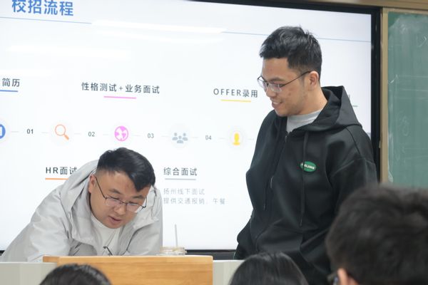 宣讲环节中,企业人力资源总监王世豪全面细致地展示了扬杰科技的发展历程、行业地位、薪酬福利及晋升通道;技术专家则结合功率半导体器件、芯片制造等核心业务,深入剖析岗位能力要求与技术创新方向。